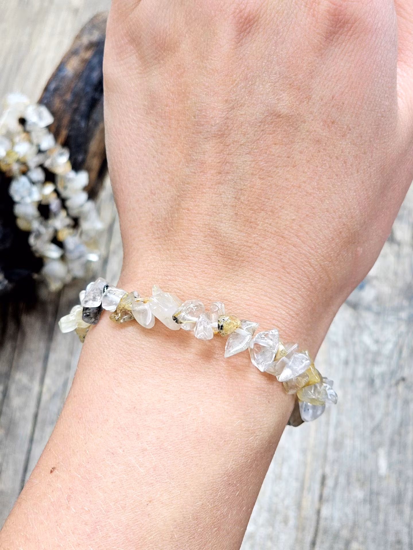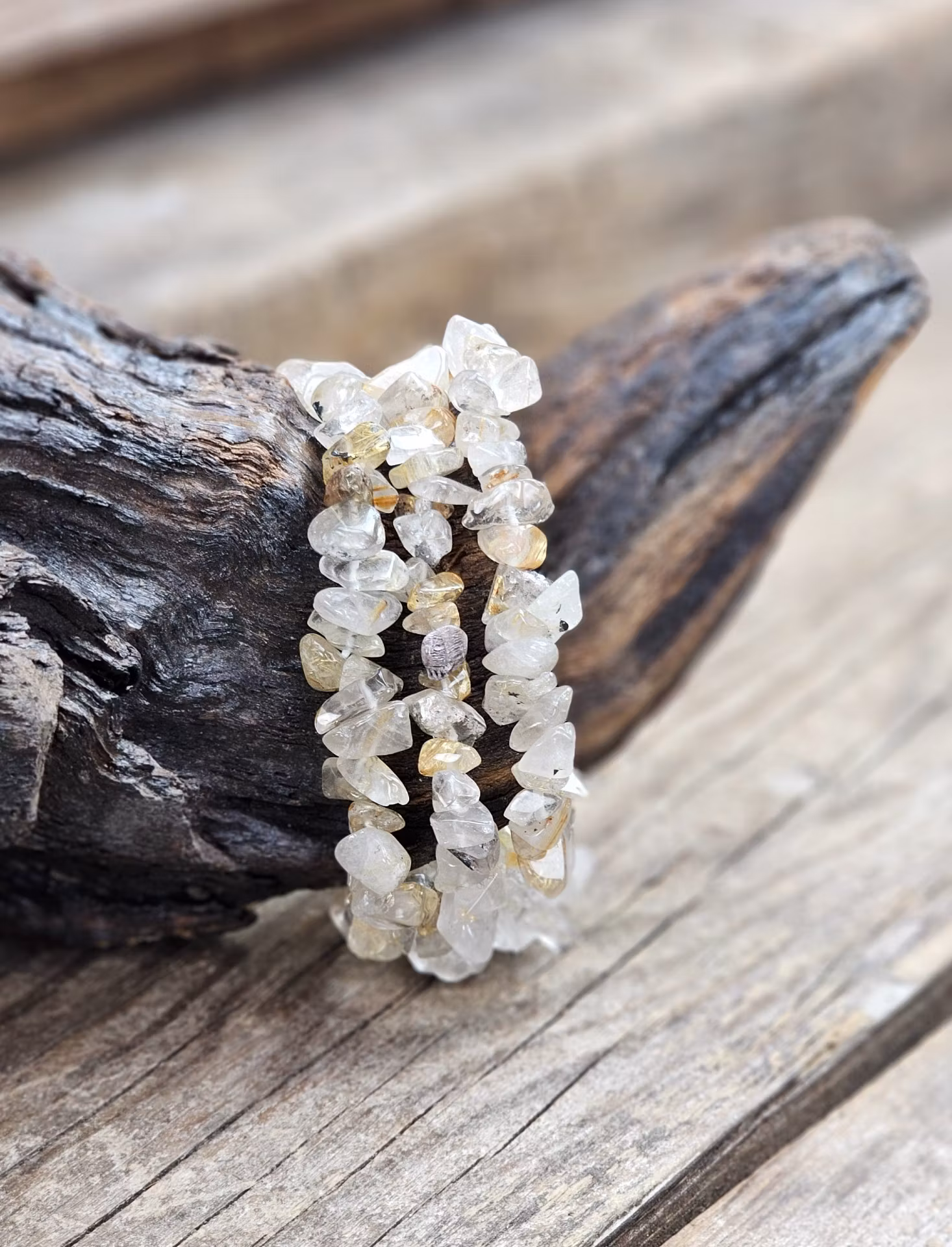 Mycket vackert elastiskt armband i Guldrutilkvarts med underbara guldrutiler i. Väldigt nätt & stilren modell som är mycket fin att ha bara en runt handleden eller flera tillsammans. Säljes styckvis. Du köper slumpvis liknande smycke enligt text & bild ovan. Tänk på att kristaller kommer från naturen & naturliga sprickor & ojämnhet kan förekomma. Färger kan skilja sig beroende på hur ljuset faller ner på kristallen samt även mellan olika bildskärmar m.m.