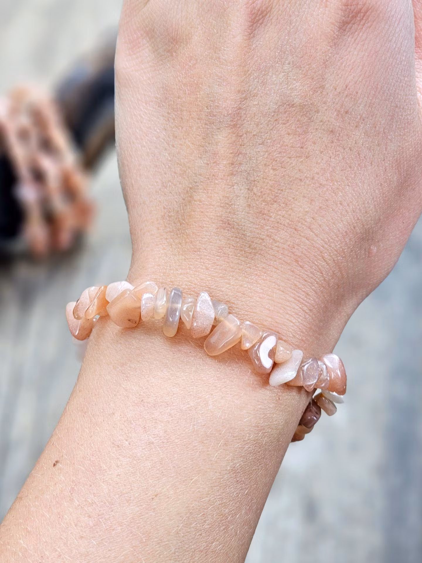 Mycket vackert elastiskt armband i Persikomånsten i jättefin kvalité. Väldigt nätt & stilren modell som är mycket fin att ha bara en runt handleden eller flera tillsammans. Säljes styckvis. Du köper slumpvis liknande smycke enligt text & bild ovan. Tänk på att kristaller kommer från naturen & naturliga sprickor & ojämnhet kan förekomma. Färger kan skilja sig beroende på hur ljuset faller ner på kristallen samt även mellan olika bildskärmar m.m.