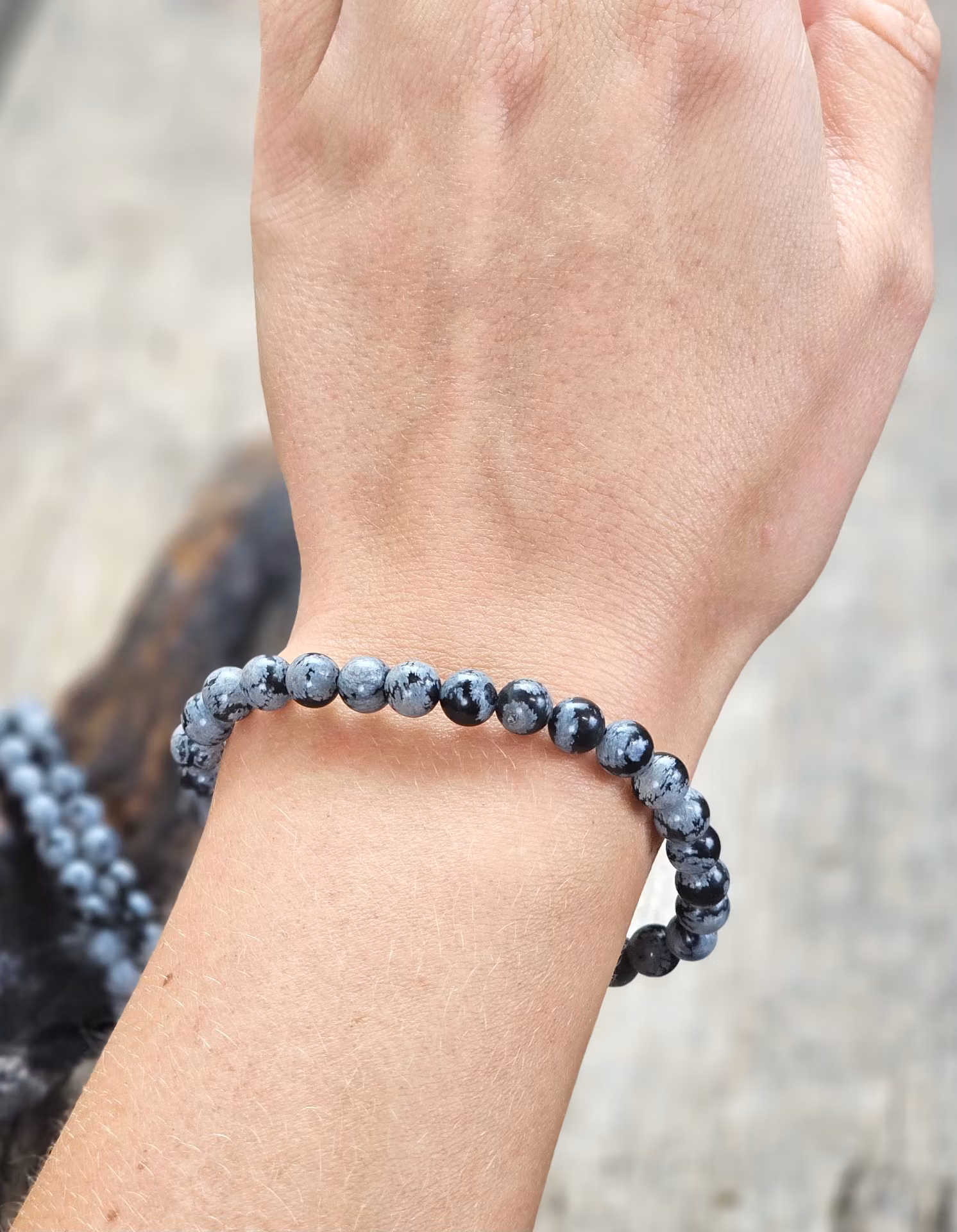Snöflingeobsidian, armband 6mm runda pärlor