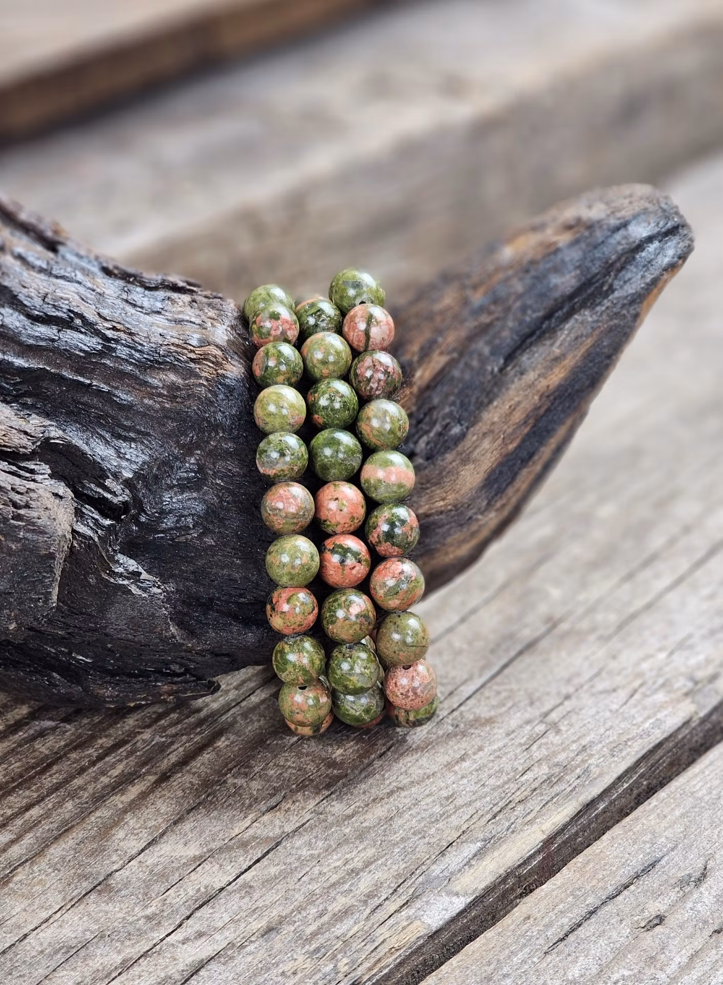 Mycket vackert elastiskt armband i Unakit. Väldigt nätt & stilren modell som är mycket fin att ha bara en runt handleden eller flera tillsammans. Säljes styckvis. Du köper slumpvis liknande smycke enligt text & bild ovan. Tänk på att kristaller kommer från naturen & naturliga sprickor & ojämnhet kan förekomma. Färger kan skilja sig beroende på hur ljuset faller ner på kristallen samt även mellan olika bildskärmar m.m.
