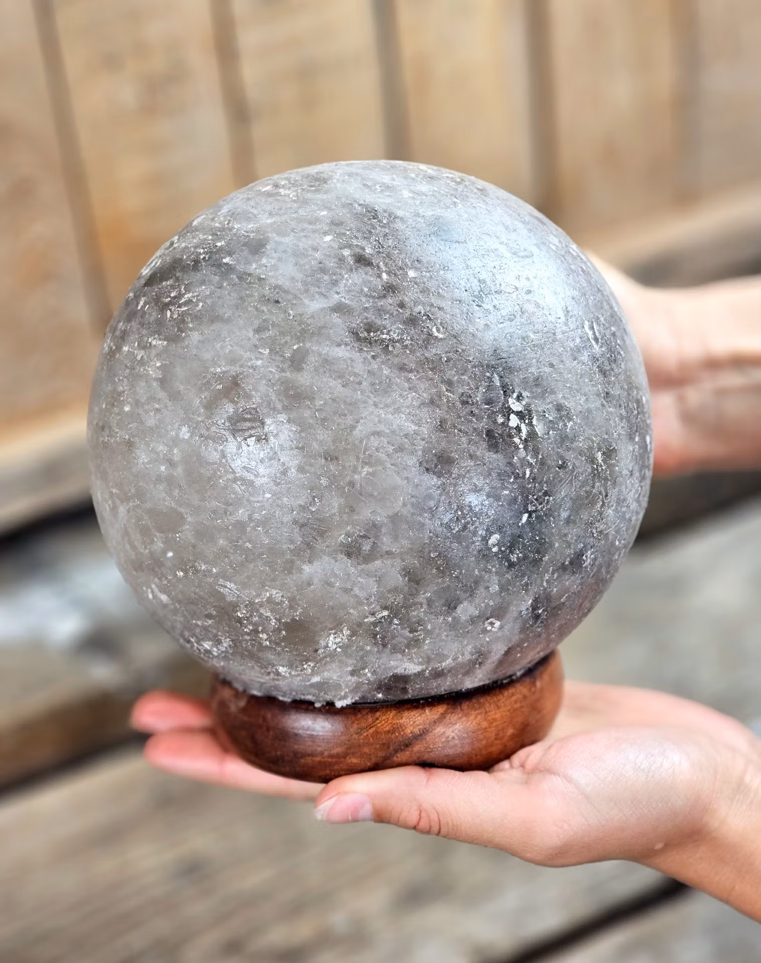 Mycket vacker stor rund lampa i Svart Himalaya Saltkristall. Säljes styckvis. Effekten när man har denna lampa tänd är helt oslagbar. En unik detalj i hemmet som skapar en underbar stämning. De skiftar i utseende. Du köper slumpvis liknande lampa enligt text & bild ovan. Tänk på att kristaller kommer från naturen & naturliga sprickor & ojämnhet kan förekomma. Färger kan skilja sig beroende på hur ljuset faller ner på kristallen samt även mellan olika bildskärmar m.m.