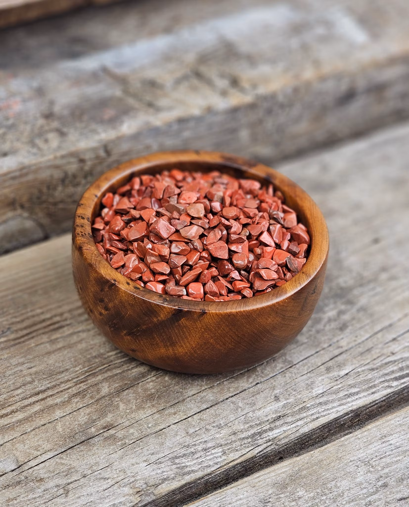 Mycket fina små trumlade mini-stenar, så kallade kristallchips, av Röd Jaspis. Säljes per 50 gram, vilket är mängden som visas på bilden med påse i handen. De skiftar i utseende & form. Du köper slumpvis liknande kristaller enligt text & bild ovan. Tänk på att kristaller kommer från naturen & naturliga sprickor & ojämnheter kan förekomma. Färger kan skilja sig beroende på hur ljuset faller ner på kristallen samt även mellan olika bildskärmar m.m.