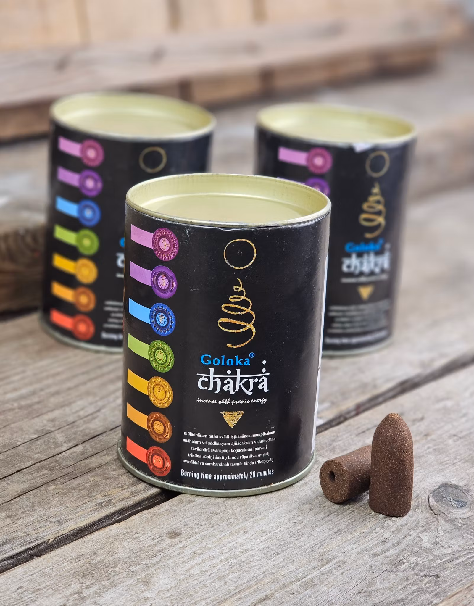 Märke: Goloka. Goloka har funnits sedan början av 80-talet och har gett människor möjligheten till njutning av dess tradition att bränna rökelse på ett enkelt sätt. Goloka har engagerat sig i omfattande forskning och utveckling för tillverkning av rökelse i olika former utav experter som har mer än fyrtio års erfarenhet. Deras FoU-team har åkt runt i världen och pratat med olika grupper av människor för att förstå deras stilar och smaker baserat på de olika floran och mineraltillgångarna i just den regionen. Dofterna utvecklas i Goloka Seva Trusts labb i Bangalore, Indien, och tillverkas av en strikt granskad produktionsenhet. Golokas tillhandahåller naturliga produkter utan inblandning av syntetiska ingredienser vilket säkerställer säkerhets- och hälsofördelarna för alla kunder. Goloka är även en välkänd pionjär inom rökelsebranschen runt om i världen, de är inte bara kända för sin kvalitet och renhet, utan också för de initiativ som de hjälper till med. Goloka Seva Trust hjälper med många olika välgörenhetsaktiviteter.