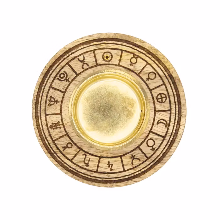 Vacker rökelsehållare i mangoträ med astrologiska tecken med ett hål för rökelsepinne samt en skål som fångar upp aska. Placeras på en värmetålig plats. Lämna aldrig tända rökelser obevakade. Håll utom räckhåll från barn och djur. Ventilera väl, ha gärna ett fönster öppet när du använder dig av rökelser så att röken kan ta sig ut. Säljes styckvis. Rökelser ingår ej, köpes separat i vår butik. Rengörs försiktigt med fuktad trasa, produkten tål ej maskindisk eller mikrovågsugn. Du köper en rökelsehållare enligt text & bild ovan. Små skillnader kan förekomma i produktens utseende på grund av dess naturmaterial. Färger kan skilja sig beroende på hur ljuset faller ner på produkten samt även mellan olika bildskärmar m.m.