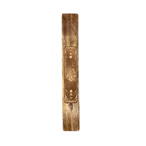 Vacker rökelsehållare i trä med utskurna detaljer med en varg och månen. För rökelsepinnar.