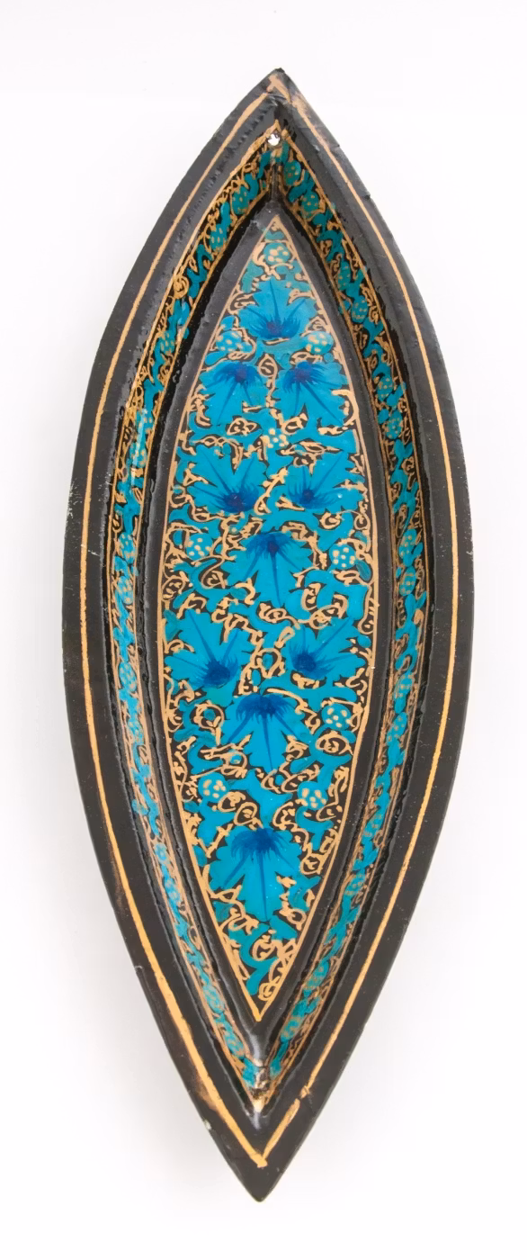 Vacker handmålad rökelsehållare i trä med Paper Mâché-konst. För rökelsepinnar.