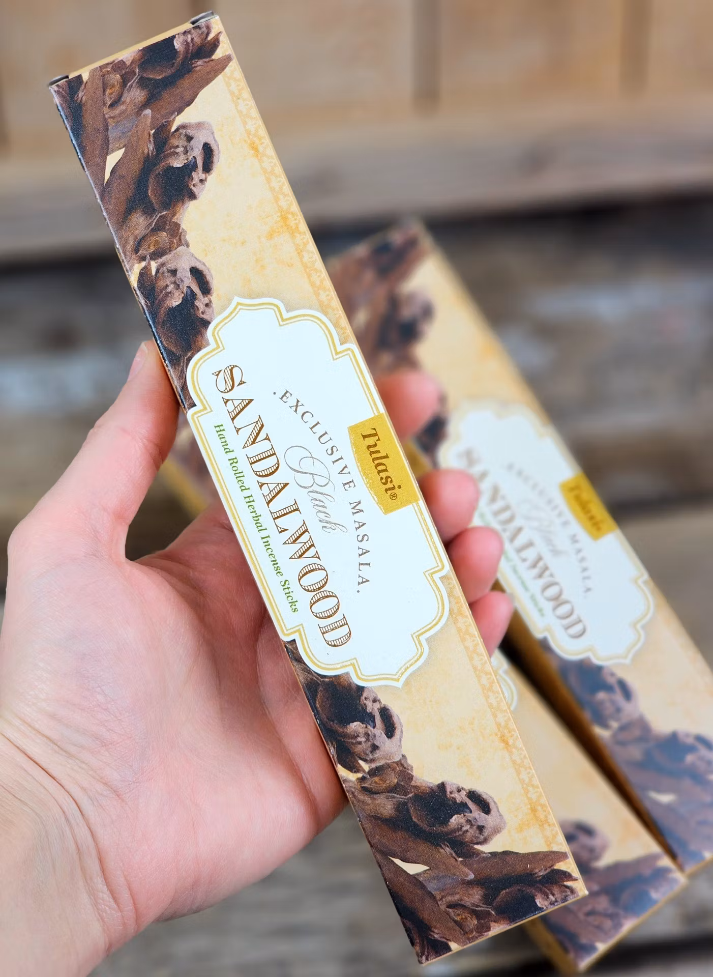 Doft: Exclusive Sandalwood. Doften Sandalwood ur den underbara serien "Exclusive" från Tulasi. Dessaa exklusiva dofter ur deras serie sammanför distinkta örtblandningar, var och en av dessa sorter är ett bevis på det konstnärskap och autenticitet som definierar Tulasi rökelser. Ett riktigt måste att pröva på!