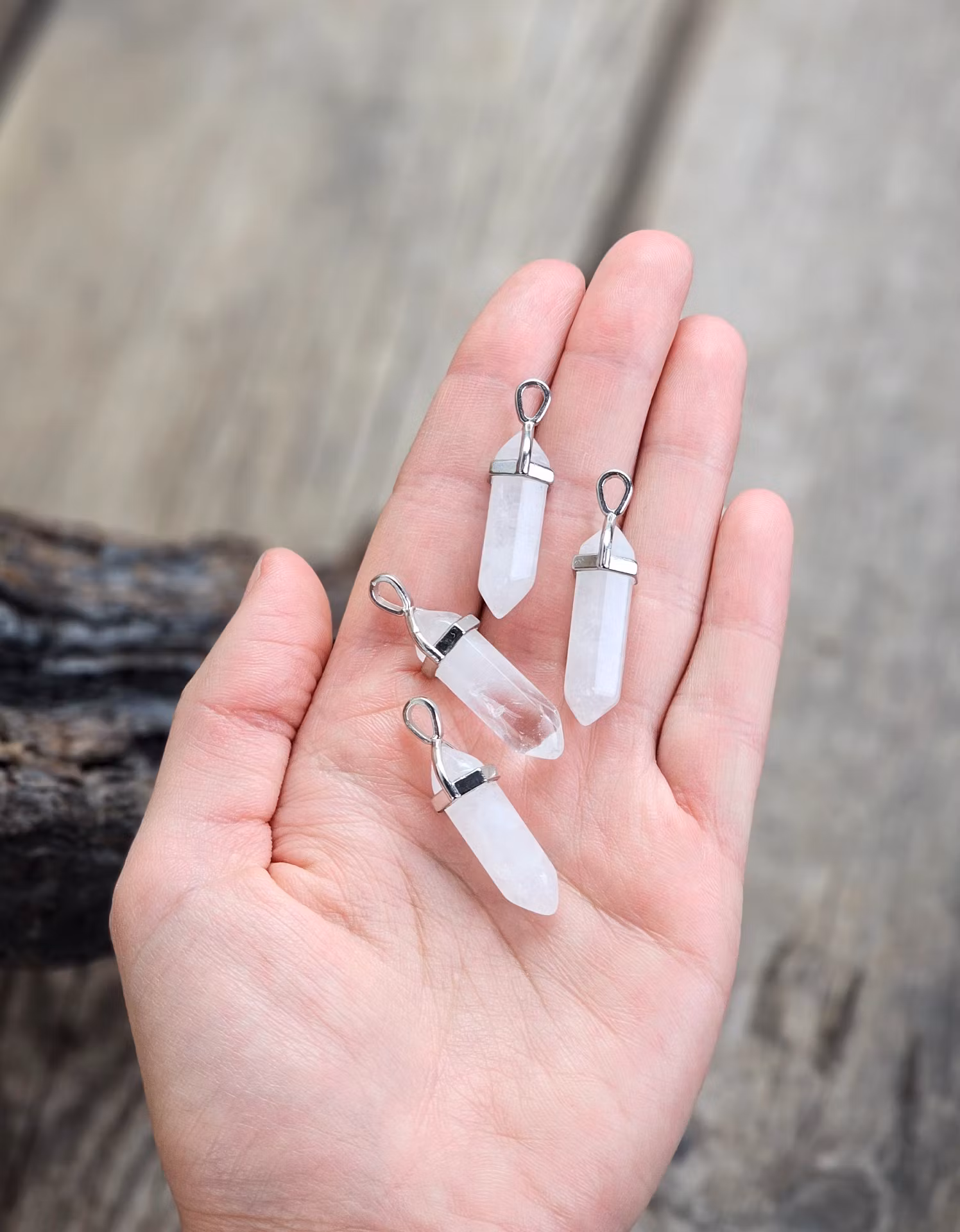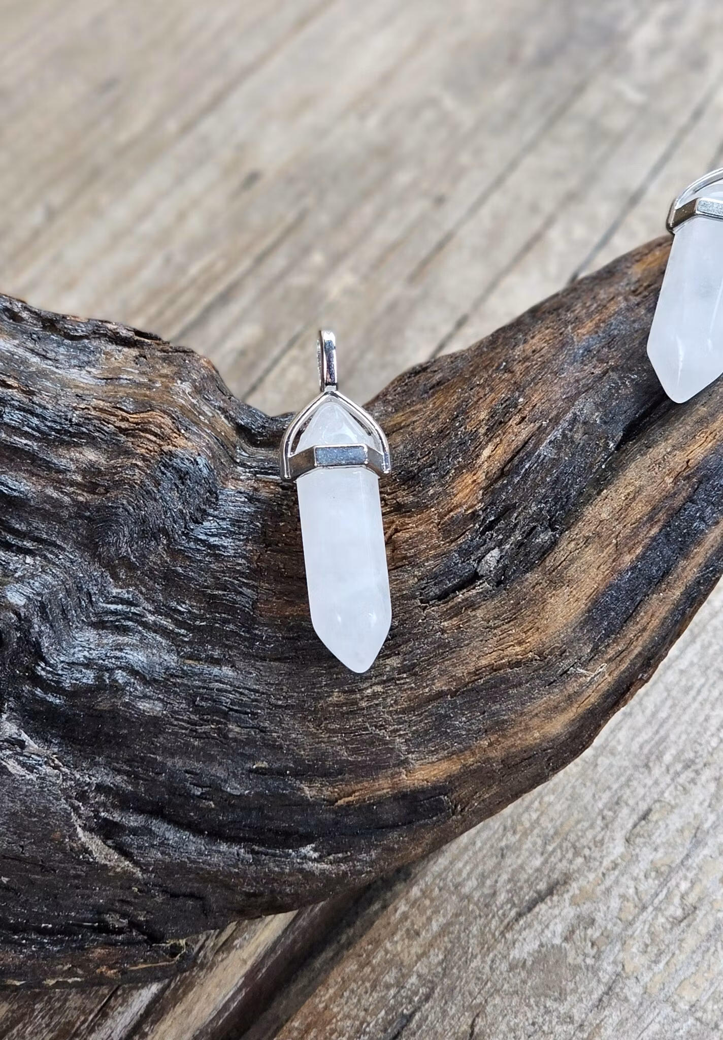 Så fint silverpläterat hänge med vacker polerad spets i Bergkristall. De varierar i utseende. Säljes styckvis. Du köper ett slumpvis liknande smycke enligt text & bild ovan. Tänk på att kristaller kommer från naturen & naturliga sprickor & ojämnhet kan förekomma. Färger kan skilja sig beroende på hur ljuset faller ner på produkten samt även mellan olika bildskärmar m.m.