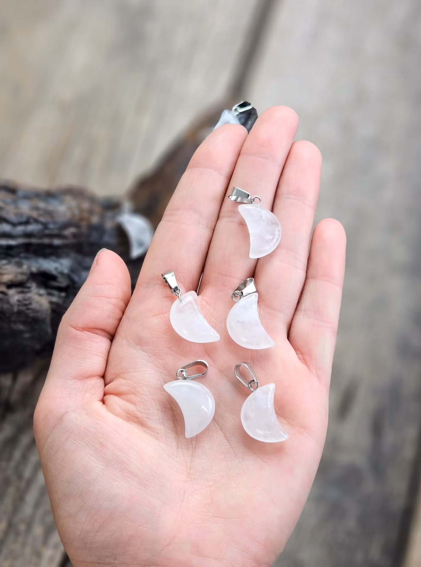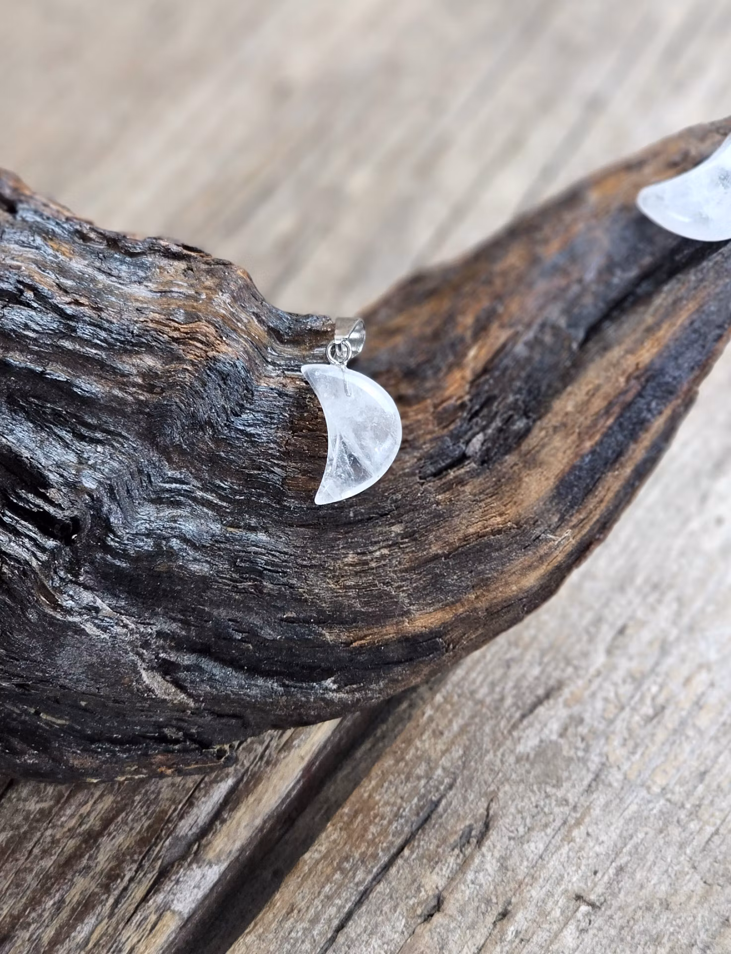 Så fint silverpläterat hänge med en vacker liten nätt måne i Bergkristall. De varierar i utseende. Säljes styckvis. Du köper ett slumpvis liknande smycke enligt text & bild ovan. Tänk på att kristaller kommer från naturen & naturliga sprickor & ojämnheter kan förekomma. Färger kan skilja sig beroende på hur ljuset faller ner på produkten samt även mellan olika bildskärmar m.m.